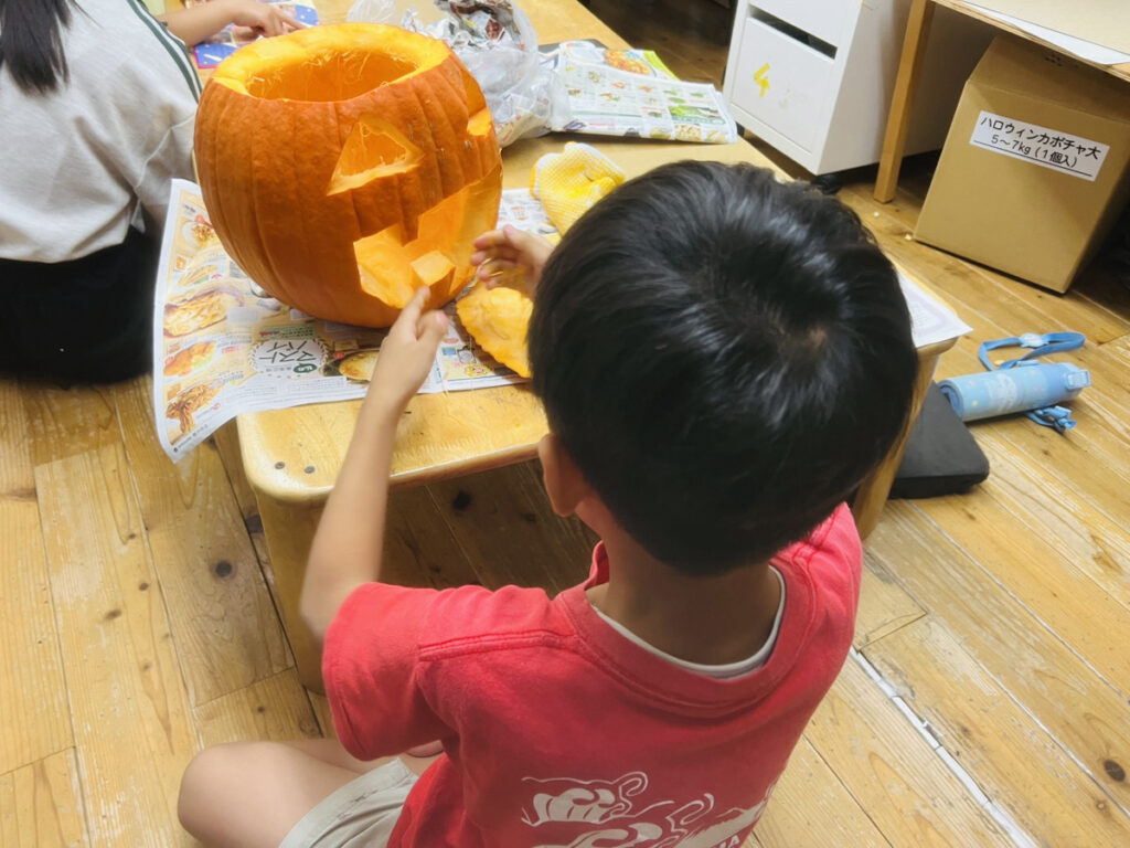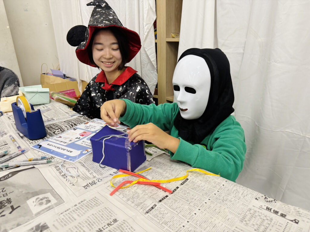 こども経理部の予算で駄菓子を仕入れたり、自作のゲームを考えたりと、自主的にイベントを楽しんでいました。ある校舎では宝探しをしたり、カボチャをくり抜いてジャック・オー・ランタンを作ったり、手作りの仮装で盛り上がったりと、どの校舎も思い思いのハロウィンを満喫!