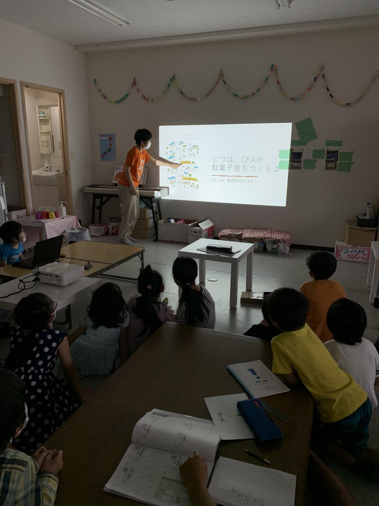 CFAの学生チームが、駄菓子屋をOPENするためにクラウドファンディング(https://readyfor.jp/projects/cfa1)を開始しました。今週、こどもたちに向けて駄菓子屋ができること、色々な人から応援してもらい、作っている様子や、みんなの好きな駄菓子の紹介など話をしています。