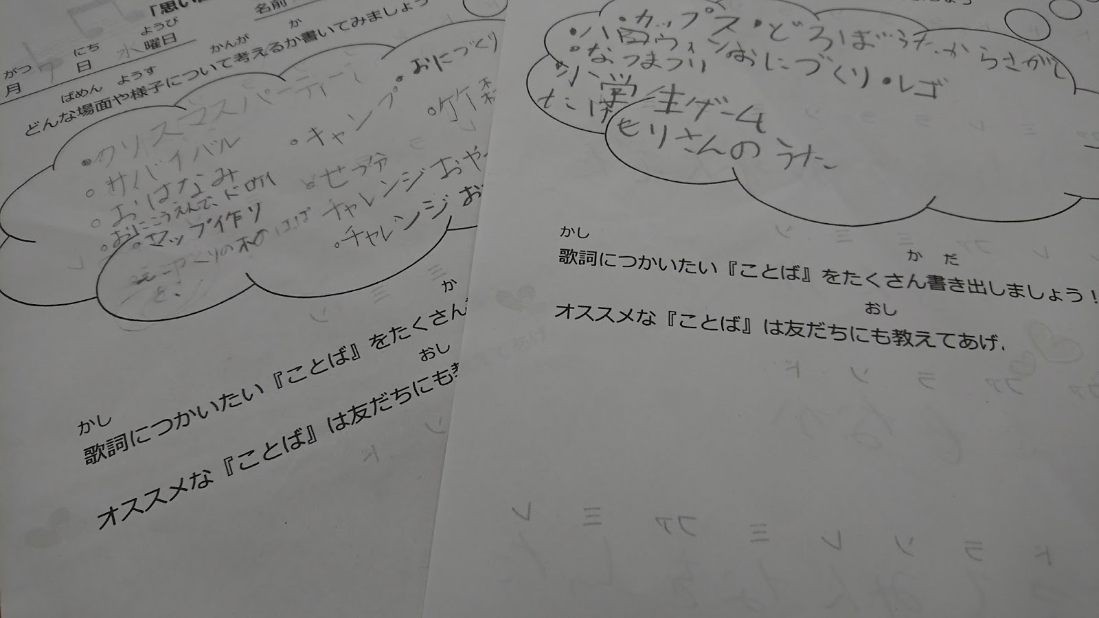 今日は卒業式にみんなで歌う合唱の歌詞づくりをおこないました。