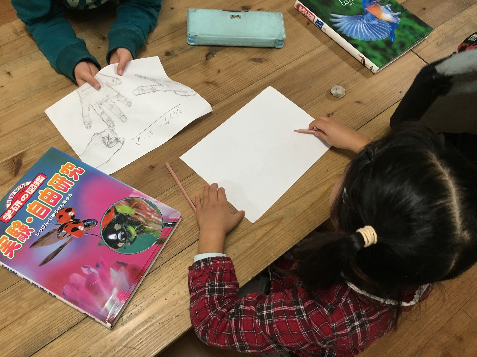室内遊びの時に3年生の女の子がお友達の手を見ながら描いた作品です。