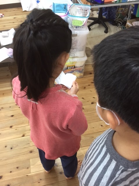 パラパラ漫画が完成した子は、自分が描いた絵が動くことを楽しんでいました。