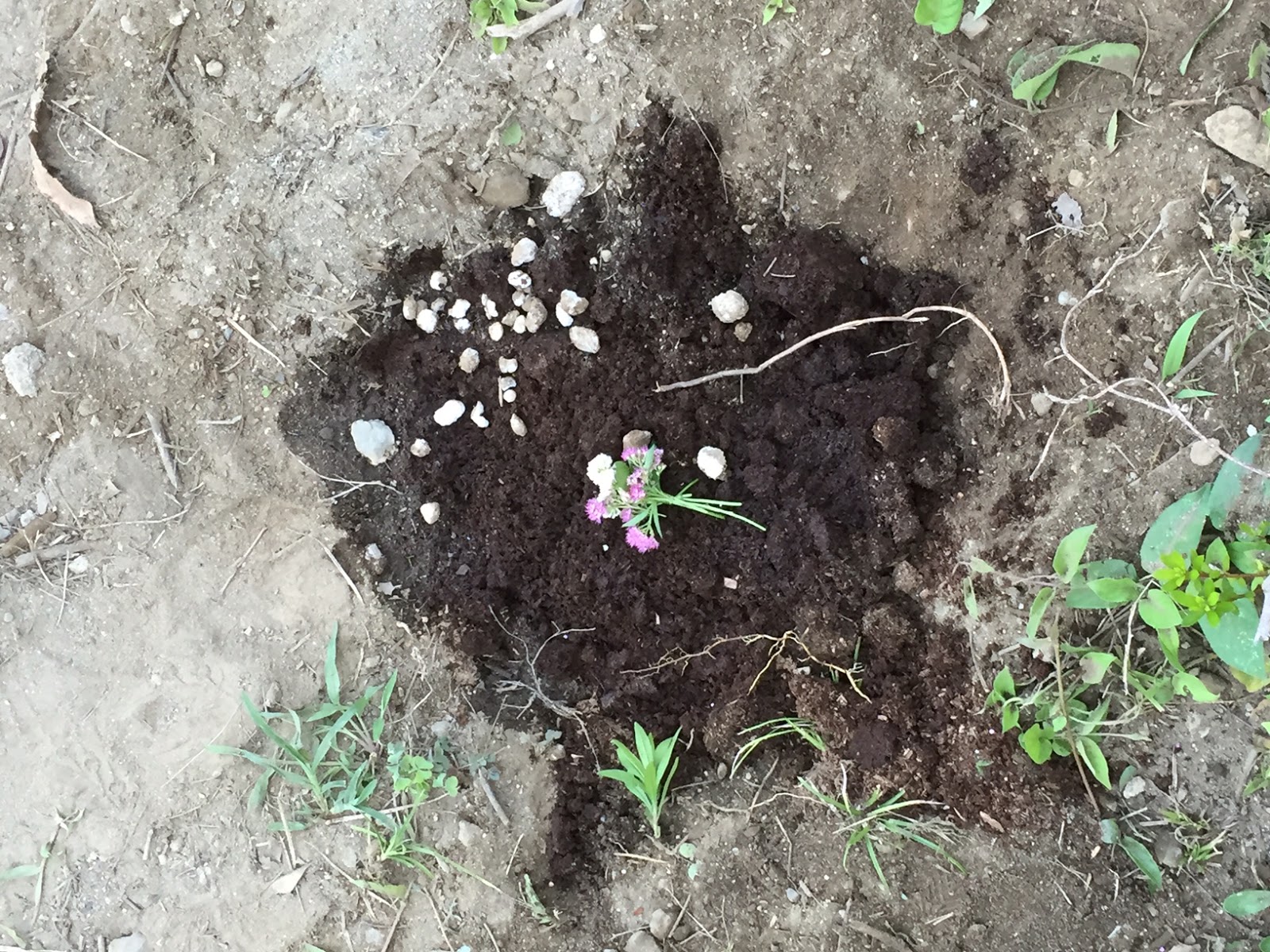 お墓が完成した後は、もぐくんに手を合わせて「今までありがとう」と感謝の気持ちを伝えていました。