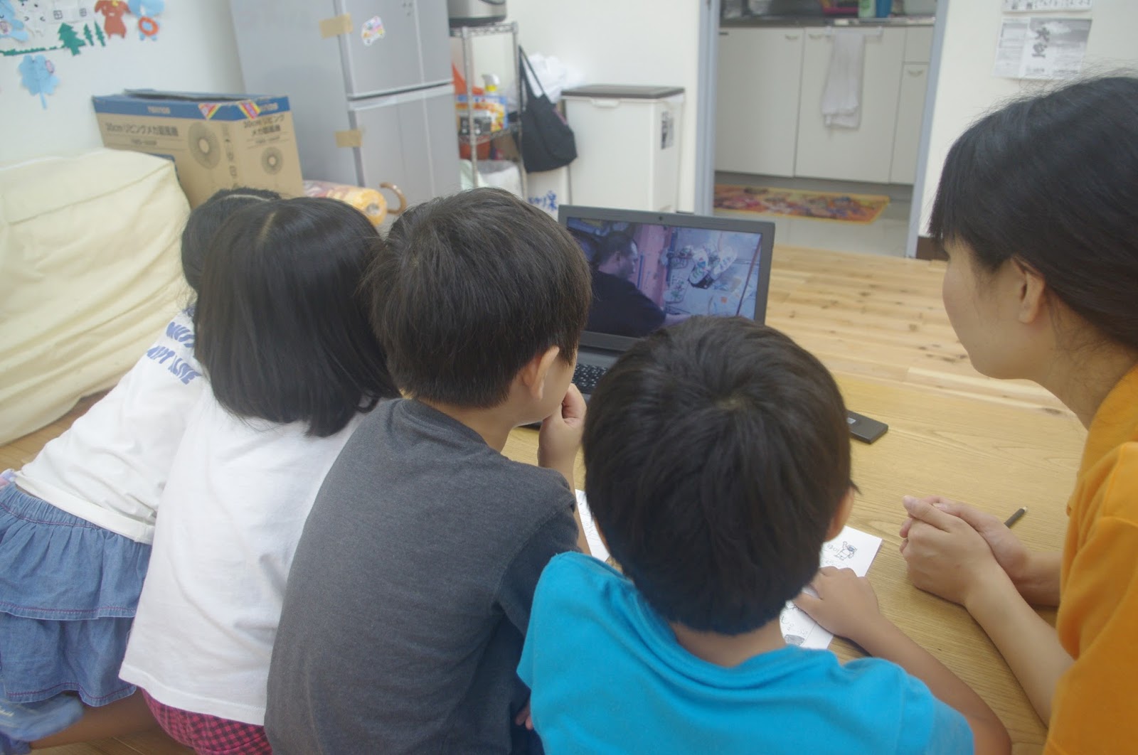 宇宙クイズで盛り上がったあとは今回のテーマワークの本題に入ります。先生から「宇宙に関係する“しごと”は何があるでしょう?」との問いかけにこどもたちは真剣な表情で考えます。「ロケットを作るひと」「宇宙人がいるか調べるひと」など色々な意見が出ました。